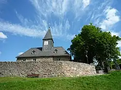 Die Saalkirche aus Bruchsteinen stammt aus dem 17. Jahrhundert. Vom landesherrlichen Kirchenregiment erhielt die Gemeinde 1783 den Auftrag, ein neues Gotteshaus zu bauen. Die Kirche wurde unter Wiederverwendung des Mauerwerks neu errichtet und nach Westen verlängert. Das Kirchenschiff und der leicht eingezogene Chor sind gemeinsam mit einem Walmdach bedeckt, aus dessen Mitte sich ein Dachreiter erhebt, der mit einem Pyramidendach bedeckt ist. 1972 entstand nach Norden ein Erweiterungsbau an den Chor. Hierzu musste die dreiseitige Empore im Norden verkürzt werden.