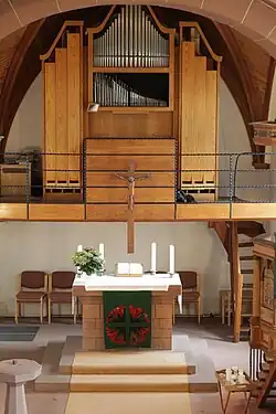 Die heutige Orgel baute die Firma Werner Bosch Orgelbau (Sandershausen) im Jahr 1965. Sie verfügt auf mechanischen Schleifladen über zwölf Register, die auf zwei Manuale und Pedal verteilt sind. Die Disposition lautet wie folgt:[10]