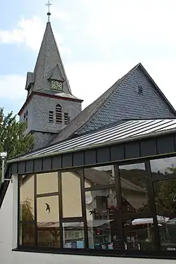 Das verputzte Kirchenschiff des 17. Jahrhunderts auf rechteckigem Grundriss wird von einem verschieferten Satteldach bedeckt. Es wird im Süden durch zwei kleine hochsitzende Rechteckfenster belichtet und durch ein hochrechteckiges Südportal erschlossen. Die westliche Giebelseite ist verschiefert und die nördliche Seite fensterlos. Um das westliche Ende sind moderne, niedrige Gemeinderäume von 1973 herumgebaut.