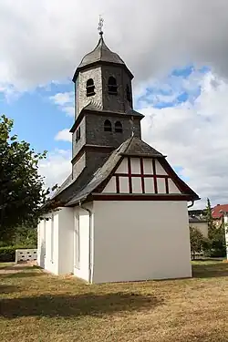 Die heutige Kirche wurde im Jahr 1638 neu errichtet oder tiefgreifend umgebaut, wobei ältere Teile des mittelalterlichen Vorgängerbaus einbezogen wurden. 1657 waren die Baumaßnahmen abgeschlossen. Eine Glocke wurde im Jahr 1730 von Rincker (Aßlar) und eine weitere 1803 von Otto (Gießen) gegossen. Im Jahr 1831 wurde die Kirche umgebaut.[7] Die Gemeinde schaffte 1892 eine weitere Rincker-Glocke an. Alle drei Glocken wurden 1917 an die Rüstungsindustrie abgeliefert und nach dem Ersten Weltkrieg ersetzt.[8]