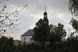 Von der ehemaligen Hof- und Schlosskapelle der Laneburg aus dem 14. Jahrhundert enthält der jetzige Bau noch den quadratischen, dreiseitig geschlossenen Chor. Im Jahr 1738 wurden ein Kirchenschiff und ein achteckiger Chorturm mit einer Haube über dem Chor neu errichtet. Das Portal an der Südseite wirkt klassizistisch. Über ihm befindet sich ein Ochsenauge.