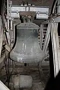 Der mittelalterliche Chorturm beherbergte ursprünglich die Glocken. Die älteste Glocke datiert aus vorreformatorischer Zeit. Die Firma Rincker goss 1803 eine Glocke, die 1870 zersprang und neu gegossen wurde. Dasselbe Schicksal widerfuhr ihr 1892/1893. Sie wurde im Ersten Weltkrieg an die Rüstungsindustrie abgeliefert und eingeschmolzen. Rincker goss nach dem Zweiten Weltkrieg zwei neue Glocken, die wie die alte Glocke im neuen Westturm aufgehängt wurden.[8] Das Dreiergeläut erklingt im Gloria-Motiv.[11] Der Glockensachverständige der Rheinischen Kirche empfahl 2019 in einer gutachterlichen Stellungnahme die historische Glocke weitgehend zu schonen. Daraufhin beschloss das Presbyterium die Anschaffung einer neuen Glocke als Ersatz.