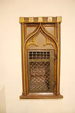 In der Ostwand der alten Kirche ist eine spätgotische Sakramentsnische mit Gittertür unter einem Kielbogen mit Maßwerk und Zinnenbekrönung aus der Zeit um 1500 eingelassen.[9] Wahrscheinlich war sie vor dem Anbau von 1937 seitlich in der Turmhalle angebracht. Das umgewidmete Schiff dient heute als Gemeinderaum und kann durch mobile Faltwände mit dem neuen Kirchenschiff verbunden werden.