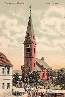 Durch Kriegseinwirkung im Frühjahr 1945 wurde die Kirche beschädigt. 1946 wurde der Bau durch die zurückgekehrten Deutschen wieder instand gesetzt. Mit Vertreibung der deutschen Bevölkerung aus Wansen wurde die evangelische Kirche nicht mehr genutzt und verfiel zu einer Ruine. Der letzte deutsche Gottesdienst fand im August 1946 statt. Im Januar 1956 erfolgte der Abriss des ehemaligen evangelischen Gotteshauses. Die Steine wurde angeblich für den Wiederaufbau von Warschau genutzt.