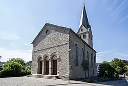Ursprünglich wurde an dieser Stelle um 700 erstmals eine Holzkirche errichtet. Diese wurde im Jahr 772 durch einen Brand durch heidnische Sachsen zerstört (gemäß Landrat Sybel). Um 1000 erfolgte mit Hilfe des Stiftes St. Cassius Bonn der Bau eines steinernen Chorgebäudes im romanischen Stil. Um 1100 erfolgte eine Erweiterung Richtung Westen durch ein Kirchenschiff. Der Bau der Sakristei 1522 und der Bau des Seiten- und Mittelschiffes durch den Homburgischen Grafen Wilhelm dem Älteren 1568 komplettierten die Kirche. Wegen der Baufälligkeit des alten Kirchenschiffes errichtete man 1841–1843 ein neues Kirchenschiff, dessen Einweihung am 22. November 1843 stattfand.