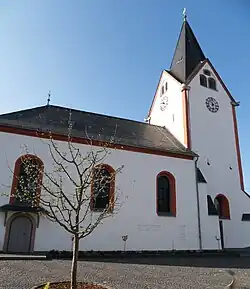 Der spätromanische quadratische Chorturm ist auf Grund seiner Schießscharten ursprünglich einer Wehrkirche zuzuordnen. Er wurde in den folgenden Jahrhunderten mehrfach erhöht. Sein oberstes Geschoss beherbergt die Turmuhr und hinter den als Biforien gestalteten Klangarkaden den Glockenstuhl. Als Abschluss erhielt er 1781 einen schiefergedeckten, spitzen Helm, der sich zwischen den nach oben abschließenden Giebeln erhebt. Das Kirchenschiff wurde an ihn 1706–08 nach Westen angebaut. Zum Chor ist es durch einen Triumphbogen geöffnet. Seine L-förmigen Empore stehen auf gedrehten Säulen. Zur Kirchenausstattung gehören die Kanzel von 1675 und der Altar von 1761. Die Orgel auf der Empore der Schmalseite hat 14 Register, 2 Manuale und ein Pedal und wurde 1898 von Karl-Heinz Voigt gebaut und 1974 durch Appolonius Bosch umgebaut.[1]