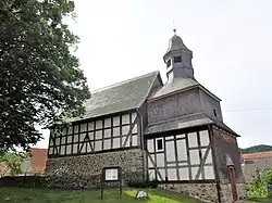 Das Fachwerkgebäude über einem hohen Bruchsteinsockel wurde 1587 errichtet. Es ist eine der ältesten erhaltenen Fachwerkkirchen in Hessen.