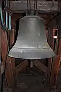 Vor dem Kirchenumbau beherbergte der Turm zwei Glocken, die zur Kircheneinweihung 1916 um eine große Glocke ergänzt wurden. Diese musste bereits ein Jahr später zu Kriegszwecken abgeliefert werden und wurde 1919 von Rincker ersetzt. Ende 1919 wurde die kleine, schadhafte Glocke umgegossen. Nachdem 1942 die beiden größeren Glocken abgetreten wurden, schaffte die Gemeinde 1949 und 1950 zwei neue Glocken an. Das Dreiergeläut erklingt auf einem Moll-Dreiklang.