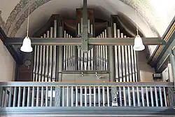 Nachdem der Gemeindegesang jahrzehntelang an einem Harmonium begleitet worden war, erwarb die Gemeinde nach dem Kirchenumbau 1916 eine gebrauchte Orgel aus Geisenheim. Sie wurde von der Firma Orgelbau Friedrich Weigle in umgebauter Form in der neuen Nische über der Westempore errichtet. Das Werk verfügte über 14 Register auf zwei Manualen und Pedal mit pneumatischer Traktur. Nach Überholungen in den Jahren 1953 und 1965 ersetzten E. F. Walcker & Cie. es 1970 durch ein neues Instrument mit 14 Registern auf zwei Manualen und Pedal. Die Disposition lautet wie folgt:
