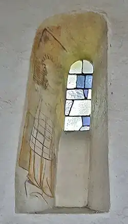 In der Südwand des Langhauses wurde in einer Fensternische eine Darstellung des Heiligen Laurentius freigelegt, die vermutlich um 1300 geschaffen wurde und die älteste Malerei in der Kirche von Betberg ist.[4] In der Vorhalle wurden Wandgemälde aus dem frühen 16. Jahrhundert freigelegt, die das Abendmahl und die Passion Christi zum Thema haben. Aus der gleichen Zeit dürften Abbildungen stammen, die an der Kirchenrückwand auf der Empore zu sehen sind und sich wohl auf die damaligen Bauernkriege beziehen.[5] Auf der Empore befindet sich auch der Zugang zum Inneren des Turms.