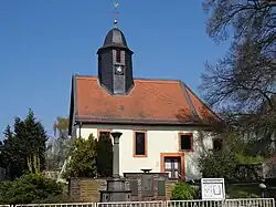 Die Kirche war dem Hl. Johannes Baptist geweiht. Der kleine Saalbau mit dreiseitigem Schluss wurde 1503 errichtet und im 18. Jahrhundert verändert. Im achteckigen Dachreiter hängen drei Glocken. Zwei der Glocken mit den Schlagtönen e2 und h2 stammen noch aus der Zeit vor der Reformation. Die eine ist inschriftslos, die andere trägt die Inschrift: „* iohannes * baptiste * in * biszis *“. Die Bildgruppe auf dem Glockenkranz zeigt eine Bildgruppe mit Jesus am Kreuz, Maria und dem Kirchenpatron. Bekannter ist sogenannte Silberglocke aus 16. Jahrhundert mit der Inschrift „* o * rex * glorie *“. Da eingesammeltes Silber beim Glockenguss mitverwendet wurde, bekam sie diesen Namen.[2]