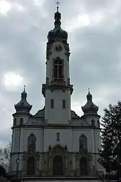 Der Stil der Kirche entspricht dem Neubarock. Typisch dafür sind die Konsolen, Kapitelle, Gesimse und bei den Türen und Fenstern die plastischen Ornamente wie Kartuschen, Girlanden und Engelsköpfe. Ebenso im Innern die reich vergoldete Ornamentik am Altar, der Kanzel und an der Orgel. Der Grundriss ist ein Kreuz mit einem halbrunden Chorraum, d. h. der Typus der Basilika mit Hauptschiff und zwei Seitenschiffen. Die Kirche bietet 1200 Sitzplätze.