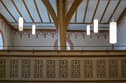 Bei der Renovierung verschwanden auch zwei von drei Emporen. Die Fürstenloge wurde in den neu erbauten Chor verlegt. 1954 wurden die nicht mehr zeitgemäßen Sonderplätze der fürstlichen Familie dann endgültig entfernt.[9] Auch Decke, Wandsprüche, Apostelkreuze und Friese wurden seinerzeit übertüncht.[16]