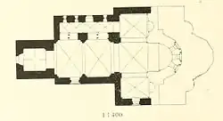 Die Westjoche im Innenraum sind über gestuften Pfeilern im gebundenen System gratgewölbt. Das Mittelschiffgewölbe wurde 1842 erneuert. Der Mittelpfeiler wird von Dreiviertelsäulen begleitet, die Seitenschiffarkaden ruhen auf gekuppelten Säulen. Die Kapitelle sind mit vegetabilen Ornamenten und Maskenköpfchen verziert. Im östlichen Hallenraum von 1870 ruht das Gewölbe auf quadratischen Pfeilern mit Säulenvorlagen. Reste des ehemaligen Apsisbogens sind erhalten. In den Turmraum wurde im 13. Jahrhundert ein gebautes Gewölbe auf angespitzten Schildbögen eingezogen.