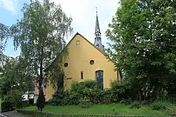Ursprünglich war die Kirche dem Hl. Servatius geweiht. Der wuchtig wirkende spätromanischeWestturm blieb als Rest einer wohl westfälischen Kleinbasilika, die 1766 abbrannte, erhalten; er ist mit einer barockisierenden Haube bekrönt. Der schlichte einschiffige Rechteckbau wurde 1768 (Bezeichnung) errichtet. Seit 1950 befindet sich im Turm eine Gedächtnisstätte für die Opfer der beiden Weltkriege, das Glasfenster zeigt den Erzengel Michael im Kampf gegen die Mächte der Finsternis. Die im begehbaren Glockenturm eingerichtete Turmstube beherbergt seit 2005 historische Ausstattungsgegenstände. Die Kirche ist ein rechteckiger dreiachsiger Bau im Stile des Bergischen Barock. Über dem Seitenportal ist sie mit 1768 bezeichnet; das Tonnengewölbe besteht aus Holz. Die Ausstattung aus der Erbauungszeit wurde von 1948 bis 1950 neu gefasst. Während der Renovierungsarbeiten im Jahr 2004 wurden die seit 50 Jahren verdeckten Glasfenster an der Ostseite wieder aufgedeckt, an der Westwand konnten Fragmente historischer Malereien freigelegt werden.