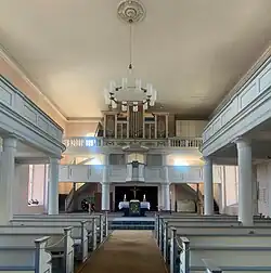Die Emporen befinden sich an drei Seiten. Auf der Seite des Altars ist die Empore, in der die Kanzel integriert ist, doppelstöckig. Auf ihr steht die von Daniel Raßmann gebaute Orgel mit 13 Registern, einem Manual und einem Pedal. Sie wurde 1917 von der Orgelbau Hardt und 1969 von Gerald Woehl restauriert.
