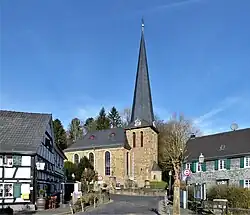 Die Evangelische Kirche Volberg liegt am Westufer des Flüsschens Sülz in Rösrath-Hoffnungsthal.