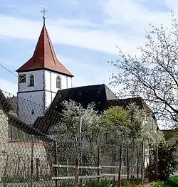 Die romanische Saalkirche besteht aus einem Langhaus und einem Chorturm im Osten, der ursprünglich zu einer Wehrkirche gehörte. Sein oberstes Geschoss enthält die Turmuhr und hinter den Klangarkaden den Glockenstuhl mit drei Kirchenglocken. Er ist mit einem Knickhelm bedeckt.