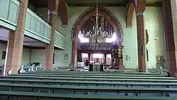 Im Inneren ist die Kirche flachgedeckt, nur in der Sakristei ist noch das ursprüngliche Gewölbe erhalten. Die Emporen stammen aus dem 17./18. Jahrhundert, die Westempore ist mit Bildern der Apostel dekoriert. 1900/01 wurden die südlichen Fenster neugotisch vergrößert und mit Bleiglasfenstern aus der Werkstatt von Wilhelm Franke aus Naumburg an der Saale versehen.
