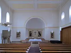 Das Innere der Kirche ist in warmen Gelbtönen ausgemalt.[4]