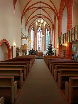 Nach der Aufhebung des Klosters im Zuge der Reformation wurden der Hochaltar, der Lettner, der den Mönchschor von dem übrigen Kirchenraum abtrennt, sowie die Altäre im Nebenschiff entfernt und eine Empore eingebaut. Die heutige Empore und die Kirchenbänke stammen aus der Zeit des Umbaus in den Jahren 1985 bis 1990. Erhalten ist eine barocke Kanzel aus dem 16. Jahrhundert, der schlichte Steinaltar im Hauptschiff stammt aus dem Jahr 1605.