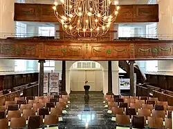 An der Ostseite finden sich zwei Holzemporen und an der Westseite ein zweiteiliger, kunstvoll geschnitzter Kanzelaltar.