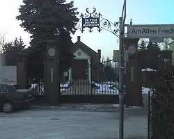 Der 1884 angelegte neue Friedhof in der Straße Am Alten Friedhof (Name eigentlich irreführend, da der alte Friedhof in der Köpenicker Straße war) erhielt in der Mitte des Grundstücks 1904/05 eine nach Plänen von F. Nischau und E. Schindler ausgeführte Kapelle, die unter Denkmalschutz steht wie auch das von E. Markus 1905 gestaltete schmiedeeiserne Tor mit der aus dem Alten Testament (Hiob 19,25 ) entnommenen Portalüberschrift „Ich weiß, dass mein Erlöser lebt“.