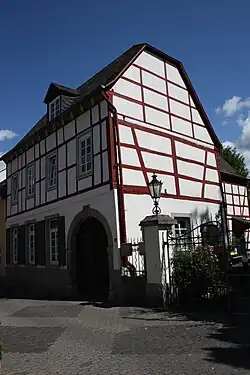 Das Haus ist von einem Krüppelwalmdach gedeckt. Im rückwärtigen Teil ist ein Fachwerktrakt angebaut, der zwei Fachwerkstöcke und zwei Dachstöcke besitzt.
