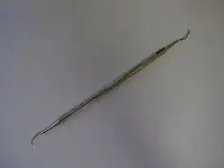 An beiden Arbeitsenden besitzt das Instrument kleine, scharfe Löffelchen von etwa 1–2 Millimeter Durchmesser, ähnlich einem scharfen Löffel. Mit diesen wird das kariöse Gewebe herausgekratzt (exkaviert). Obgleich dieses bereits durch seine braune Farbe zu erkennen ist, kann es durch ein spezielles Medikament (Kariesdetektor) zusätzlich angefärbt werden.