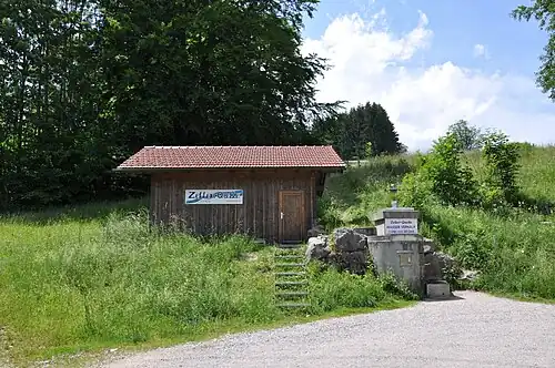 Die Quelle St. Georg (auch Zeller Quelle) liegt in der Teilfläche Hinterreit nordwestlich von Maiergschwendt | |