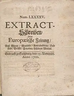 - Von der Österreichischen Nationalbibliothek digitalisierte Ausgaben: Extract-Schreiben oder Europaeische Zeitung (online bei ANNO).