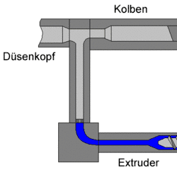 - ↑ a b c Michael Thielen, Klaus Hartwig, Peter Gust: Blasformen von Kunststoffhohlkörpern, Hanser Verlag, 2006, ISBN 978-3446226715, Abschnitt Kontinuierliche / diskontinuierliche Extrusion, S. 41–44 (online-Vorschau auf GoogleBooks).