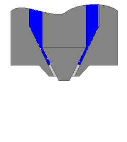 Bei Blasformteilen mit stark ovalem Querschnitt wird durch die Form von Düse und Dorn üblicherweise ein Schlauch mit über dem Querschnitt variierender Wanddicke erzeugt, um den unterschiedlichen radialen Reckwegen im Blaswerkzeug Rechnung zu tragen.[7]
