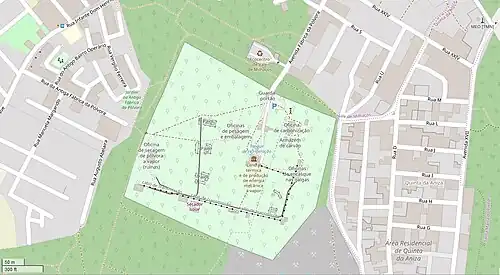 ![]() der Fábrica de Pólvora de Vale de Milhaços Feldbahn im Eukalyptus-Wald am Lagerschuppen Nr. 23 der Fábrica de Pólvora de Vale de Milhaços | |