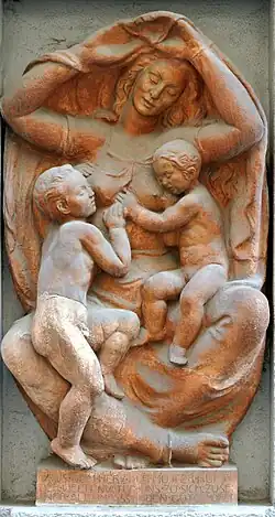 Das moderne Wohnhaus wurde 1956 von Josef Vytiska erbaut. Am Sockel befindet sich ein Terrakottarelief von Edmund Moiret aus der Bauzeit, das eine Mutter mit zwei Kindern darstellt. Die Inschrift lautet: