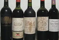 Das Füllniveau einer Weinflasche wird meistens mit den folgenden englischen Begriffen oder deren Abkürzungen bezeichnet und bezieht sich auf Flaschen vom Typ einer Bordeauxflasche: