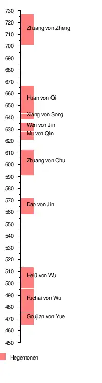- ↑ Anmerkung: Diese Staaten nach Wade-Giles-Umschrift: Ch'in, Ch'i, Chin, Ch'u. Die Herrscherdynastie Chou.