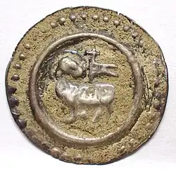Einseitiger Ewiger Pfennig der Abtei St. Gallen, nach 1295, Lamm Gottes, Kreuzfahne