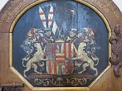 Das freiherrliche Wappen von 1660 ist gevierteilt: 1 und 4 das Stammwappen, 2 und 3 in Gold zwei rote Pfähle (der ausgestorbenen Edelherren von Grafschaft). Zwei Helme mit rot-goldenen Decken, rechts der Stammhelm, auf dem linken zwei rote (oder goldenen) Büffelhörner mit Pfauenfedern an den Mündungen besteckt (von Grafschaft).