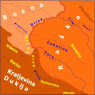Im 11. Jahrhundert setzte Konstantin Bodin, König von Dioklea, Vukan, einen Adligen aus Raszien, zum Gespan (Župan) ein.[4] Dessen Nachfahren wurden Begründer der Nemanjić-Dynastie bzw. Nemanjiden, der wohl bedeutendsten serbischen Dynastie. Ihm folgte zunächst sein Sohn Uroš I., dann Enkel Uroš II. und Urenkel Desa.
