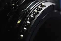 Die elek­trisch­en Kon­takte eines moder­nen AF-S-Objek­tivs mit Kunst­stoff­bajo­nett