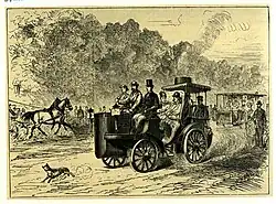Im Oktober 1875 hatte Bollée Vater mit der Fahrt der L’Obéissante („die Gehorsame“), dem ersten von ihm gebauten Dampfwagen, von Le Mans nach Paris beträchtliches Aufsehen erregt. Für diese Strecke von etwa 210 km hatte er nur 18 Stunden benötigt.[13] Bollée lernte in Paris den Ingenieur Léon Le Cordier kennen. Es kam zu einer geschäftlichen Beziehung; Le Cordier erwarb für seine Société Fondatrice die Nutzungsrechte am Antrieb der L’Obéissante für die meisten kontinentaleuropäischen Staaten.[13] Dazu knüpfte er Kontakte zur Österreichisch-Ungarischen Monarchie. Amédée Bollée führte seine Dampfdroschke sogar Kaiser Franz Joseph (1830–1916) samt Hofstaat vor. Trotz eines triumphalen Erfolgs der Werbeveranstaltung in Wien blieb eine Vermarktung aus. Es ergaben sich indes über den Berliner Geschäftsmann Berthold Arons aus der bekannten Bankiersfamilie Arons neue Möglichkeiten im Königreich Preußen. Im August 1880 reiste Le Cordier mit zwei Dampfwagen nach Berlin: der sechssitzigen, offenen La Mancelle („die aus Le Mans“) und einer schweren Zugmaschine mit sowohl zivilen wie auch militärischem Einsatzmöglichkeiten, genannt L’Élisabeth.[17]