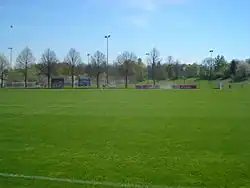 Erste Spiel- und Trainingsstätte wurde die Schyrenwiese an der Wittelsbacherbrücke. Erster Gegner war im März 1900 der 1. Münchner FC 1896, der FC Bayern gewann das Spiel mit 5:2. Schnell stießen weitere Spieler zum Verein, so unter anderem drei der Fußballabteilung des TSV München 1860. Im Frühjahr 1900 überließ der Herd- und Ofenfabrikant Friedrich Wamsler dem FC Bayern ein Grundstück an der Clemensstraße als Spielstätte.[11] Im Januar 1901 nahm man auch das Eishockeyspiel auf.[12] Das erste Spiel der Derbygeschichte zwischen dem FC Bayern und den „Sechzigern“ fand im Jahr 1902 statt. Der FC Bayern gewann das Spiel mit 3:0. Um den Spielbetrieb auszuweiten, beschloss der Verein 1906 den Übertritt zum Münchner Sport-Club, behielt aber eine gewisse Eigenständigkeit bei, was sich in der Bezeichnung „F.A. Bayern im Münchner SC“ (F.A. = Fußballabteilung) ausdrückte. Infolge der Fusion trat Bayern nun in weißen Hemden und roten Hosen an, diese Farben lösten damit das Blau-Weiß aus der Gründungszeit ab, die Bezeichnung Die Roten war geboren. Auf lokaler Ebene entwickelten sich die „Bayern“ zur unangefochtenen Nummer eins im Fußball, im Wettbewerb auf süddeutscher Ebene waren sie hingegen weniger erfolgreich. Zu sehr dominierten zu dieser Zeit noch die Mannschaften, die bereits in den 1890er Jahren entlang des Oberrheins zwischen Freiburg und Frankfurt entstanden waren und sich weiterentwickelt hatten, das Fußballgeschehen.
