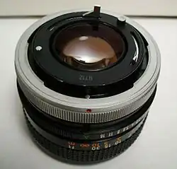 Das FD-Bajonett entspricht dem FL-Bajonett und ist mit ihm kompatibel. Es wurden ein Blendensimulator hinzugefügt sowie drei Kontaktstifte, zwei unbewegliche und ein beweglicher.