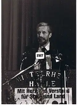Im Süden gründeten sich nach dem Zweiten Weltkrieg zwei liberale Parteien, die Liberale Partei (LP) und der Soziale Volksbund (SV). Beide Parteien traten mit jeweils eigenen Listen gegeneinander bei der Kommunalwahl im September 1946 an. Der Soziale Volksbund sprach sich gegen die Planwirtschaft, für Wettbewerb und das mittelständische Unternehmertum aus. Die „Lehren von Karl Marx würden auf die heutige Zeit angewandt zur Katastrophe führen“, war das Credo der Liberalen. Man hatte das Ziel, die Aufhebung der Zonengrenzen zu erreichen, um den freien Warenverkehr zwischen den Besatzungszonen zu ermöglichen.[2]