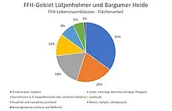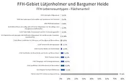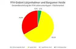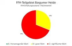 Im FFH-Teilgebiet „Bargumer Heide“ sind vier FFH-Lebensraumtypen vertreten. Sie machen nur knapp 3 % der Teilgebietsfläche aus, siehe Diagramm 7. Ein Drittel der FFH-Flächen haben einen guten Erhaltungszustand, während der Rest einen unbefriedigenden Wert aufweist, siehe Diagramm 8:[38]