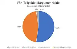 Die Flächen des Teilgebietes sind überwiegend im kommunalen Besitz der Gemeinden Bargum und Bordelund. Der Entwässerungsgraben Heidegraben gehört dem Sielverband Bargumer Koog. Zwei kleinere Areale am Weststrand befinden sich im Privatbesitz, siehe auch Diagramm 6.[37]