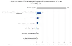 Verglichen mit anderen FFH-Gebieten ist der Anteil der kartierten Lebensraumtypen nach Anhang I FFH-Richtlinie mit knapp 23 % gering, siehe auch Diagramm 3. Folgende Lebensraumtypen wurden der EU-Umweltbehörde laut Standard-Datenbogen im Mai 2019 gemeldet:[10][11]