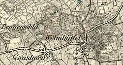 - ↑ Ausschnitt der Karte des Deutschen Reiches von 1930. Wald bei Walmbüttel um 1930. In: DigitalerAtlasNord - Archäologie-Atlas SH. Landesamt für Vermessung und Geoinformation Schleswig-Holstein, abgerufen am 27. August 2022.