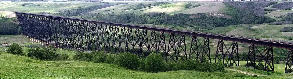 Trotz der größtenteils flachen Landschaft bis zum Übergang zu den kanadischen Rocky Mountains im Westen mussten einige Flusstäler überquert werden. Um maximale Steigungen von 4–5 ‰ einzuhalten, waren teils sehr hohe und lange Brücken unter anderem über den Pembina River, Battle River und den North und South Saskatchewan River nötig. Über das ausgedehnte Tal des Battle River wurde etwa zehn Kilometer nordwestlich von Wainwright ab 1907 ein fast 900 Meter langes Gerüstpfeilerviadukt aus Stahl errichtet, das die Strecke in fast 60 Meter Höhe über den Fluss führt. Die Brücke wurde Ende 1908 fertiggestellt und der Streckenabschnitt zwischen Wainwright und Edmonton konnte im November des Folgejahres in Betrieb genommen werden.[1][2]